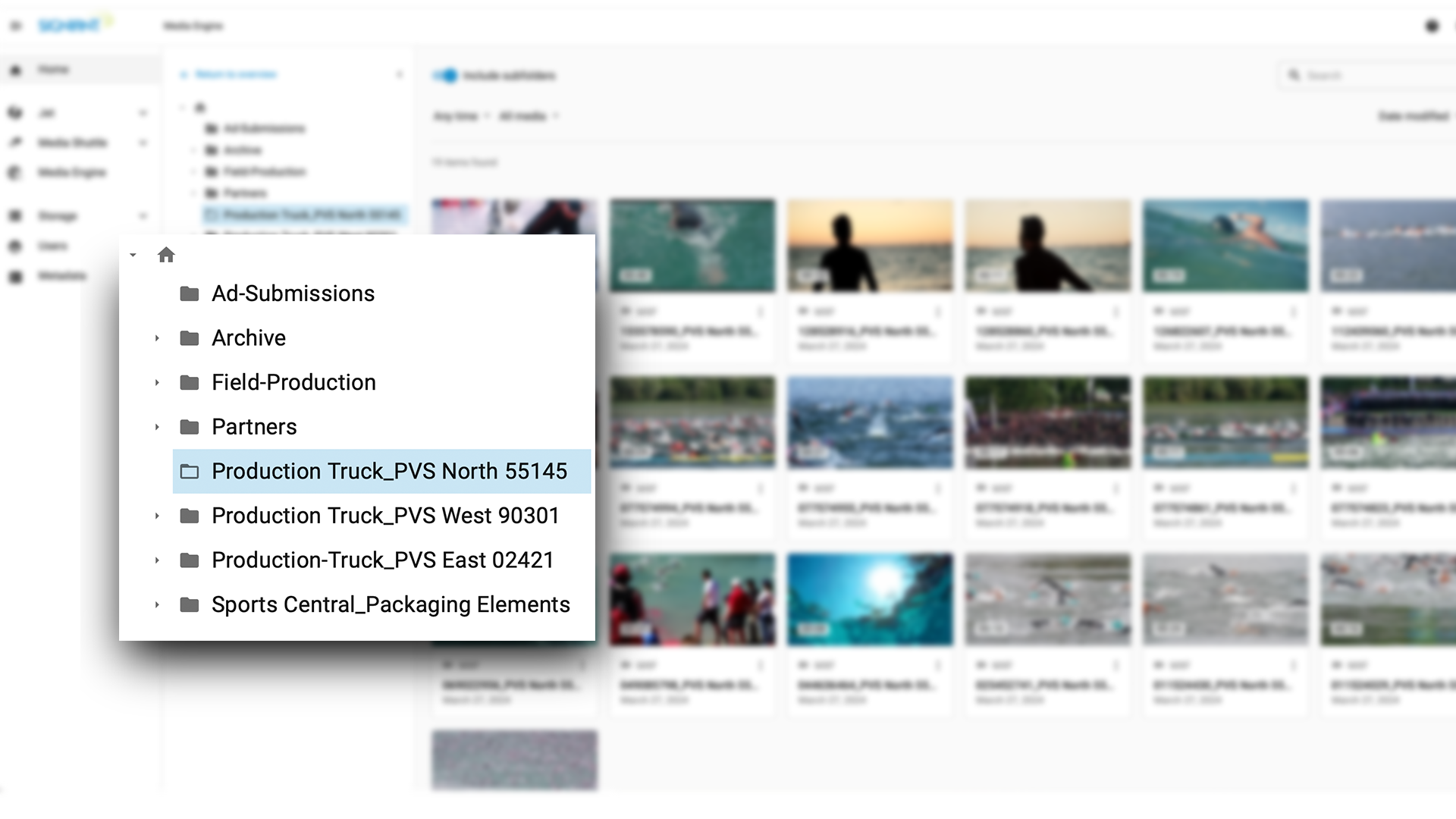 With Media Engine, you can browse your storage locations more intuitively. The new directory navigation feature allows you to explore your storage hierarchy by Media Shuttle portal, folder, and subfolder. This structured view helps you quickly understand and manage the organization of your assets without needing to switch between Media Shuttle and Media Engine.