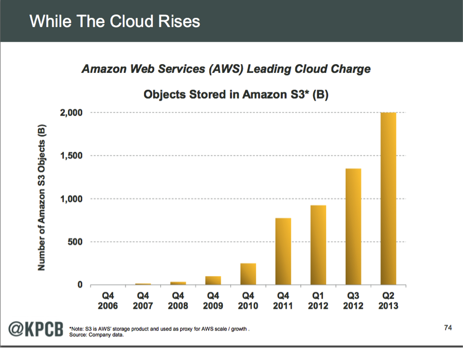 While this data is close to a year old, the pace of adoption of cloud storage is just plain torrid. Extrapolating a bit, that would mean that now there are approximately 3 trillion objects being stored in Amazon S3 alone, not to mention everything in the other cloud storage platforms.